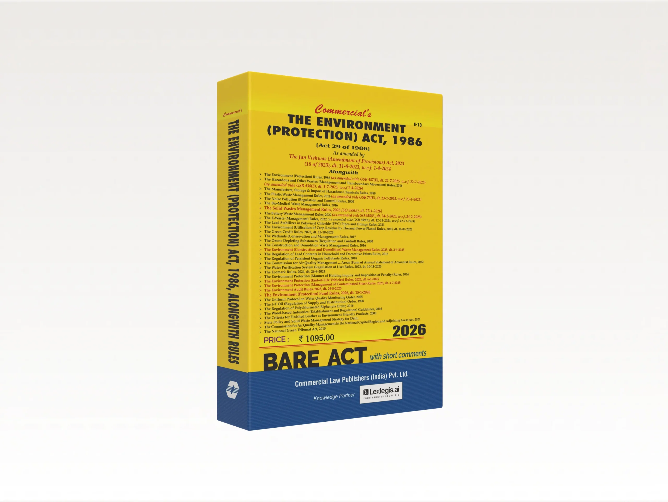 The Environment (Protection) Act, 1986 (Act 29 of 1986), as amended by the Jan Vishwas (Amendment of Provisions) Act, 2023 (18 of 2023), along with subsequent amendments up to 1-4-2024, serves as a comprehensive and authoritative legal reference for environmental law practitioners, regulatory authorities, academicians, and students.