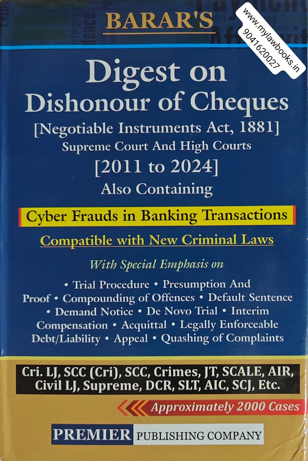 Premier’s Digest on Dishonour of Cheques [Negotiable Instruments Act, 1881] Supreme Court And High Courts [2011 to 2024] By Barar