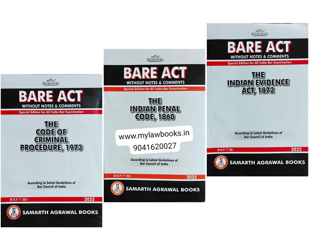 Samarth Agrawal’s Set of Indian Penal Code, Code of Criminal Procedure & Indian Evidence Act (IPC, CrPC & Evidence) Special Edition for All India Bar … (AIBE) (Bare Act Without Notes & Comments)