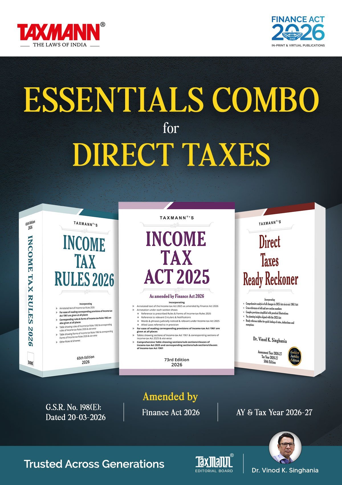 Taxmann’s ESSENTIALS COMBO | Direct Tax Laws | Income Tax Act, Income Tax Rules & Direct Taxes Ready Reckoner | Set of 3 Books | Finance Act 2026 Edition | G.S.R. No. 198(E); Dated 20-03-2026 | AY & Tax Year 2026-27
