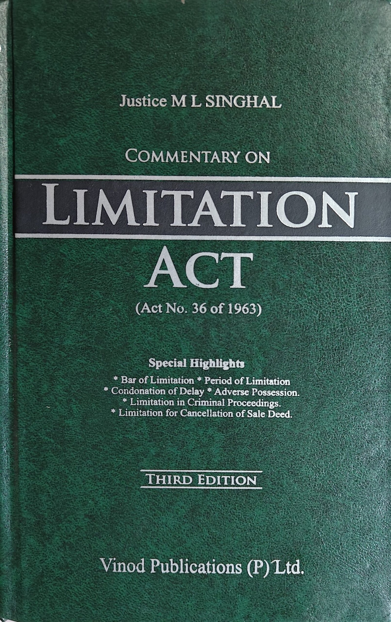 Vinod Publication’s Commentary on Limitation Act by Justice M. L. Singhal – 3rd Edition 2025